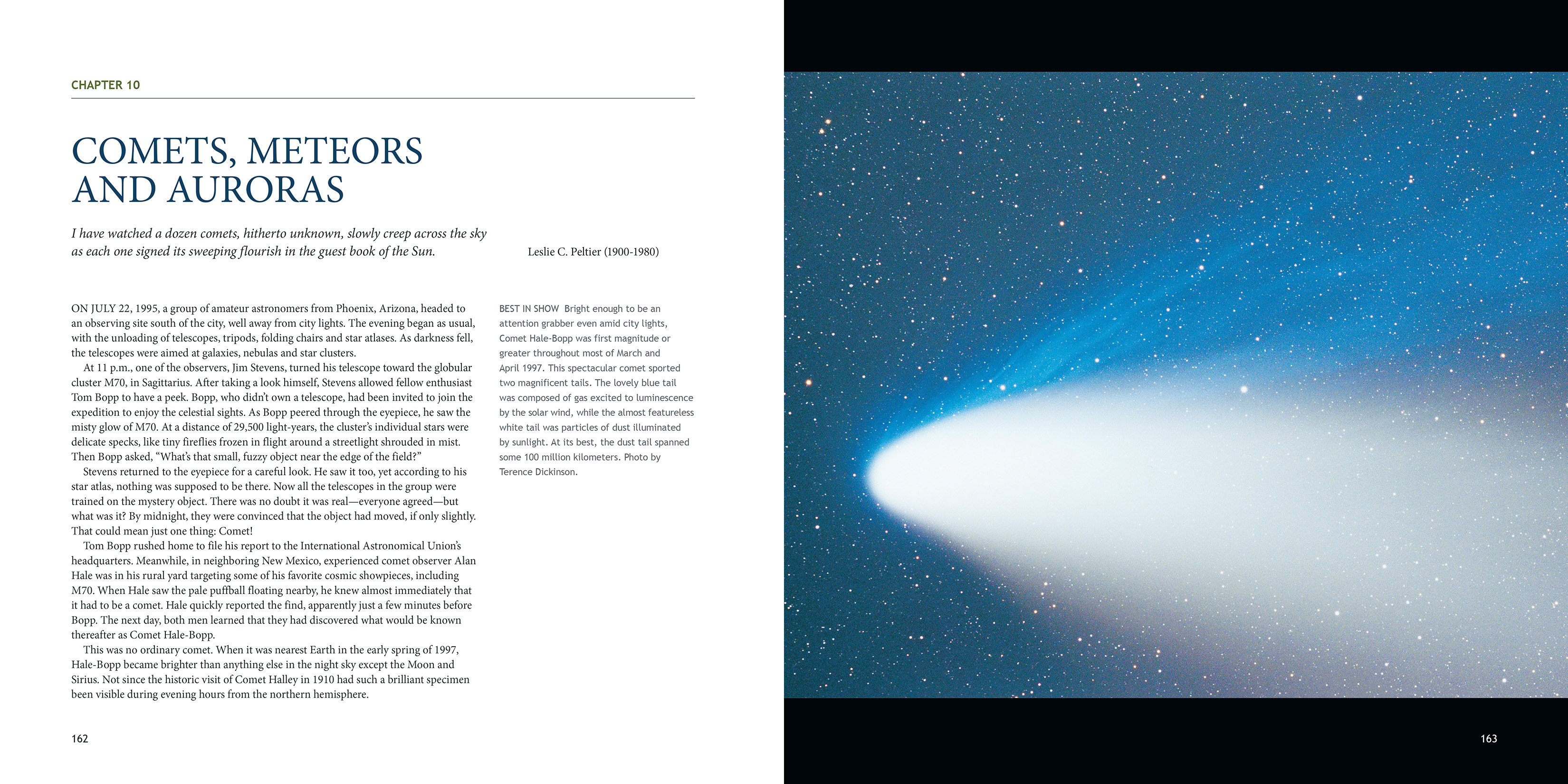 Here, we address the fascinating world of transient celestial events — auroras, meteors and comets. Your unaided eyes are all you need to enjoy a display of northern lights or a darting meteor (the major annual meteor showers are noted). Comets don’t often blossom to naked-eye visibility but are a pleasure to view in binoculars and telescopes.