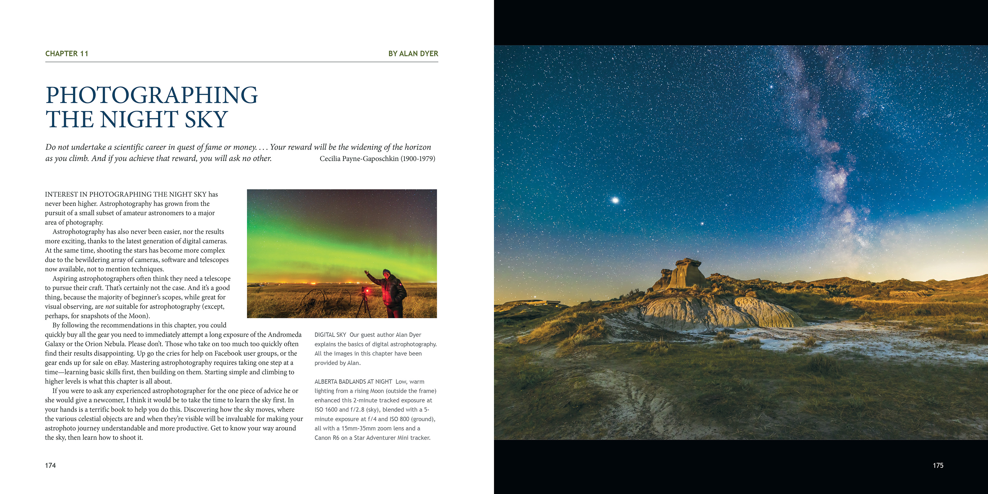 Expert astrophotographer Alan Dyer presents a step-by-step guide to celestial photography, starting with simple gear and techniques, then advancing to more complex deep-sky imaging. Alan covers camera-on-tripod nightscapes, Milky Way photography with star trackers, polar alignment and shooting through a telescope to capture both the brilliant Moon and faint deep-sky objects. He also offers numerous recommendations for camera settings and the best equipment.