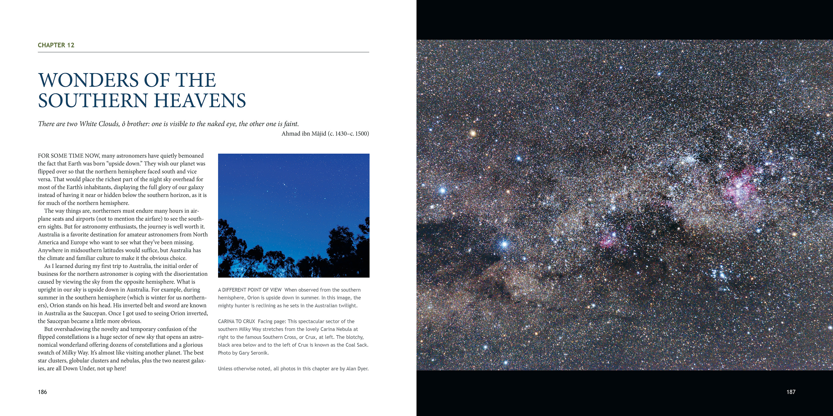 A primer on how the starry sky moves on a nightly and seasonal basis. You’ll discover that easy-to-find patterns like the Big Dipper and Orion point to other constellations and stars. Our Videos page features animations that supplement the book’s diagrams and charts.