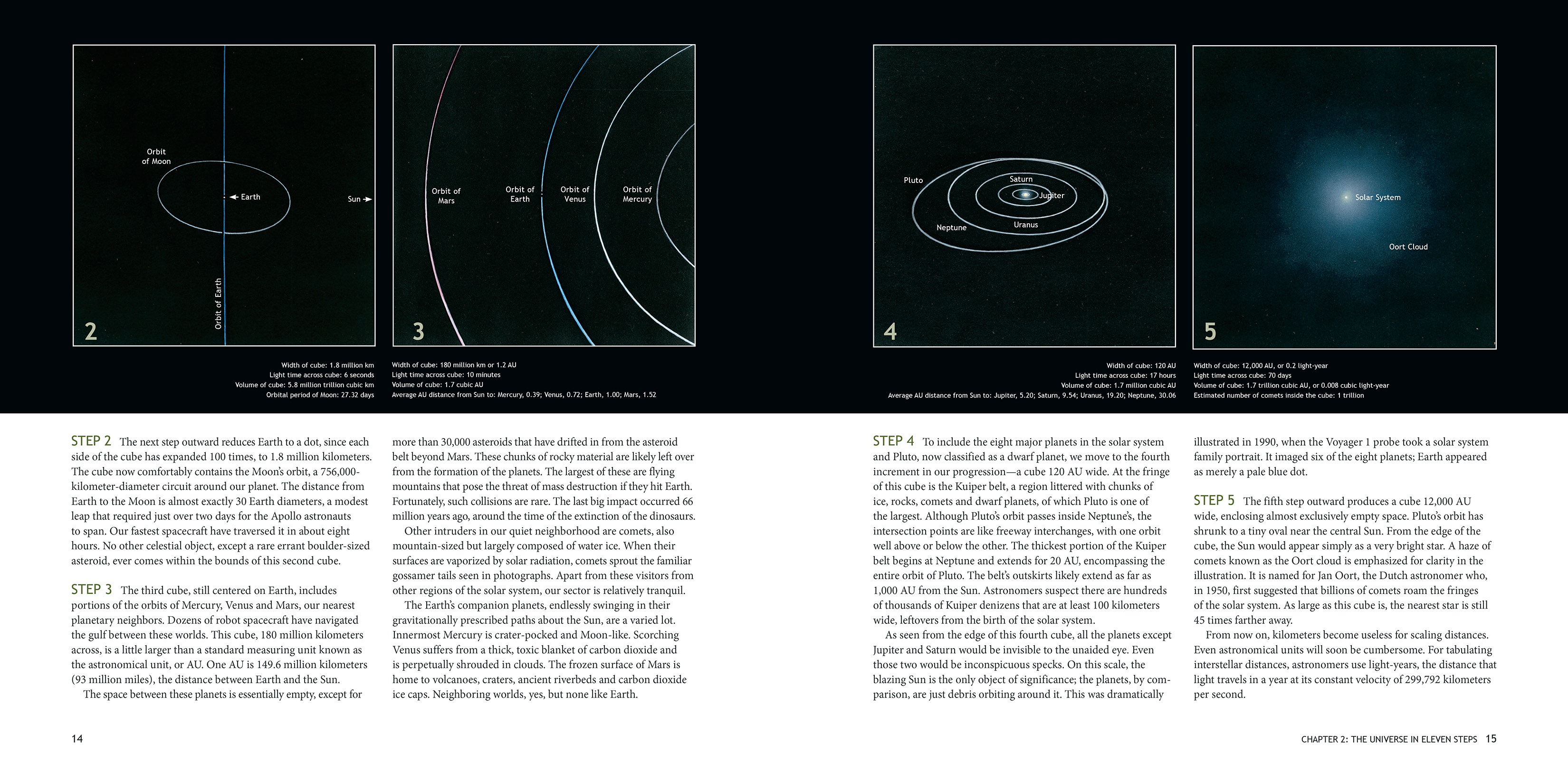 An 11-step cosmic zoom through our solar system, across the Milky Way and outward to the edge of the observable universe. This graphic exercise inspires an appreciation for the structure and immensity of the cosmos.